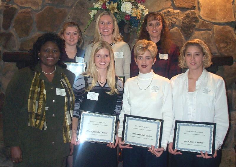 AWARD categories and their respective recipients: Bibb County: Leigh Foshee Brack CDDS Freshman: April Turner CDDS Sophomore: Nikki Thompson Houston Co Freshman: Sheri Thursby Houston Co Sophomore: Allison Garrett Cassidy: Tonya Minschew Georgia Dental Education Foundation: Gwen Smith and Pam McCullough |